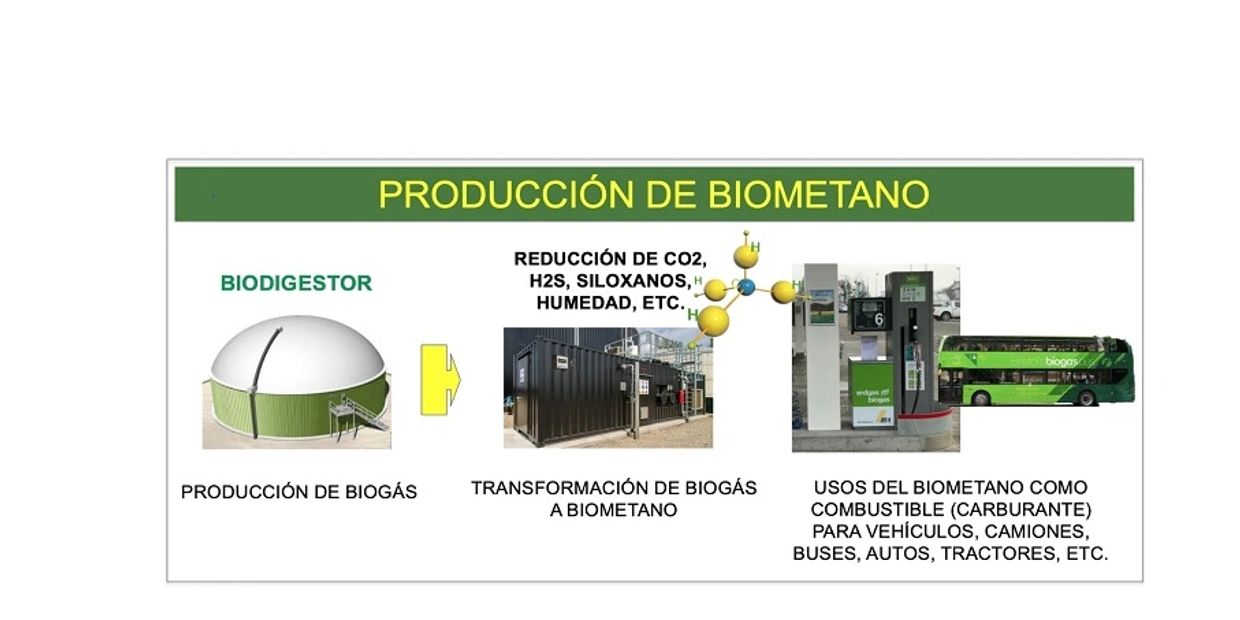El Metano (CH4), como combustible renovable, obtenido, es usado en motores de combustión interna de flotas vehiculares, de acuerdo a como a continuación se indica: